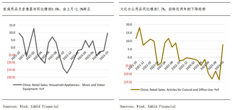 (6) 在地產低迷環境下,10月傢俱類同比增長1.7%,邊際改善。