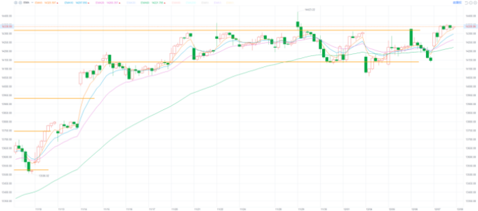 12月7日,納斯達克綜合指數1小時K線圖顯示,指數再次於接近下方14139.19點位的支撐位附近跳空高開,震盪上行,貼近上方壓力位附近的14342.35點位恢復小幅震盪。從技術指標來看,EMA5/10/20日均線三線向上發散,EMA5日均線支撐指數上行;BOLL布林線中軌轉而上行;買入成交量顯著放大;MACD金叉,紅柱放量;KDJ金叉,三線發散,然J線有反勾。料想,指數短期內或有進一步上行的跡象,關注其能否於EMA5日均線上企穩。