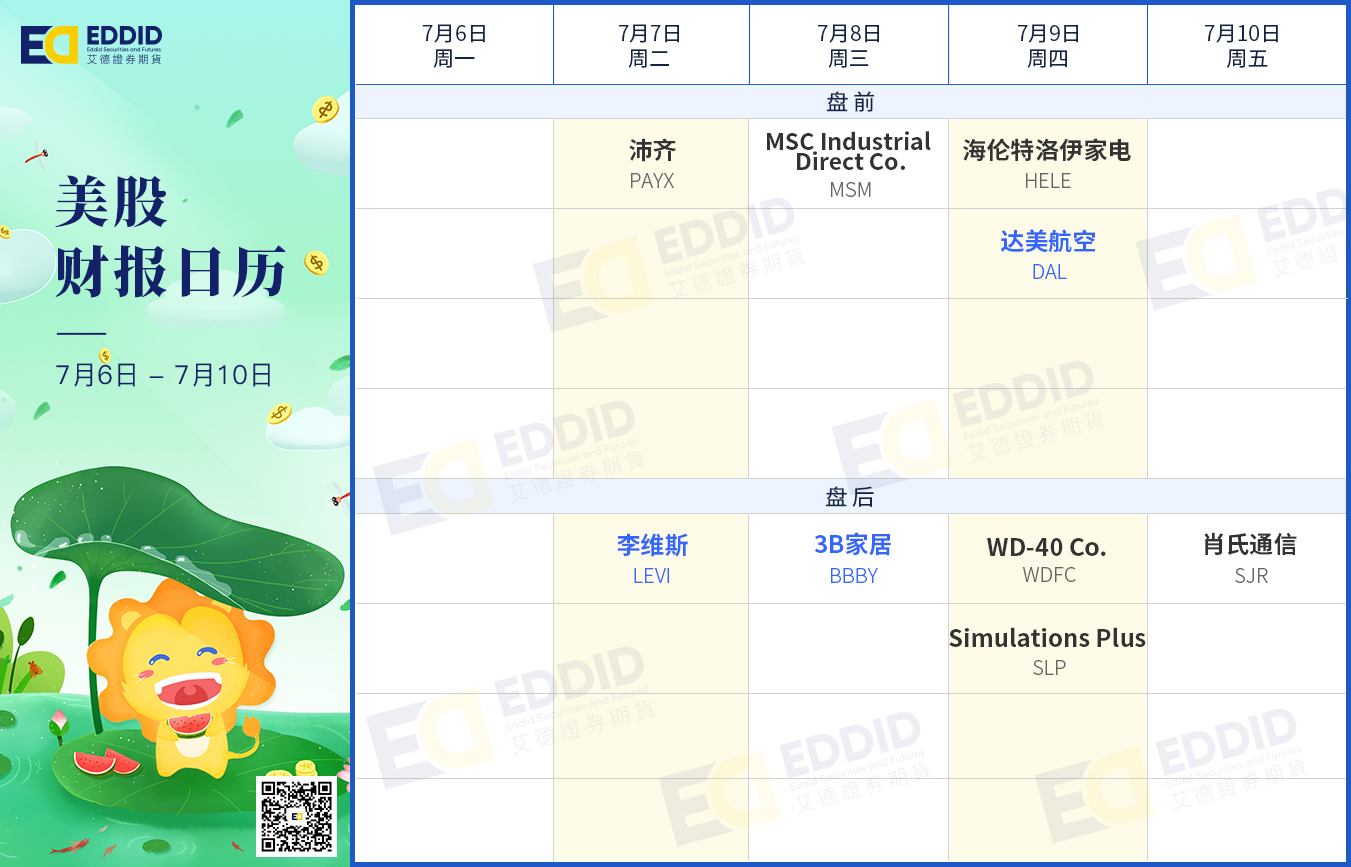 个股财报方面,艾德证券期货摘录了本周部分预发布财报的公司,以供各位投资者参考: