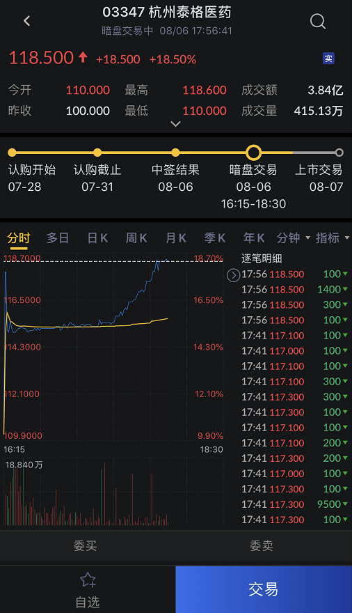 如之前泰格医药(03347.HK)上市前的艾德暗盘中,暗盘最高价为119.3港元,较招股价100港元高出19.3%,不计手续费,每手赚1930港元。