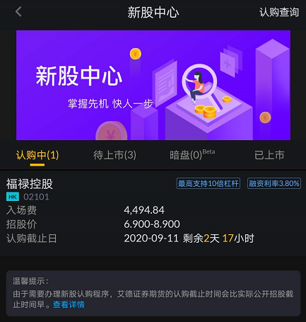 3. 现金打新0认购费:港股打新首选艾德,现金打新0元认购费;
